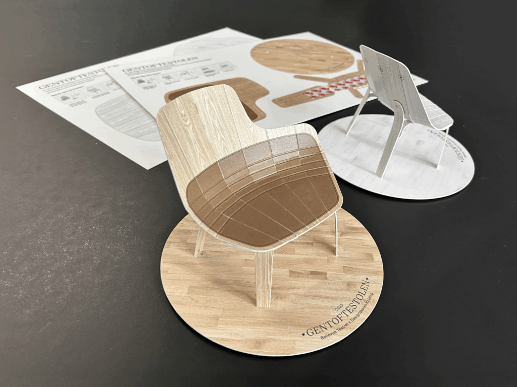 Som en ekstra del af projektet har vi udviklet mini udgaver af Gentoftestolen i to versioner: én som skoleelever skal dekorere inden forstillingen, og én som en lille “souvenir”, publikum kan tage med hjem efter forestillingen.